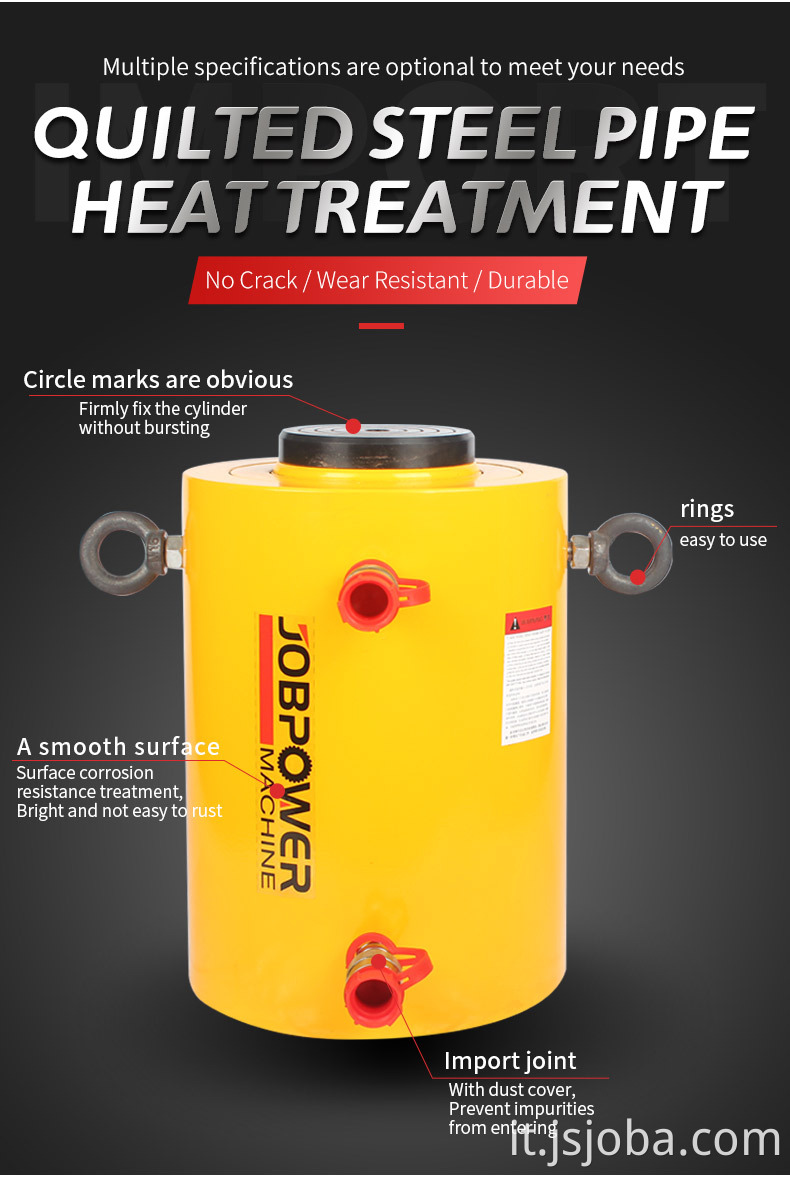 I jack a doppio azione sono il controllo facile da offrire e i prese idrauliche, specialmente in progetti su larga scala. Sono progettati con dispositivi di pressione di sicurezza e valvole a pressione integrate per evitare il sovraccarico per proteggere i jack per un funzionamento sicuro. La connessione del dispositivo adotta il tubo ad alta pressione e la connessione del giunto filettato, che è rapidamente da utilizzare e supera le carenze della perdita di olio di giunti tradizionali veloci. Viene utilizzato principalmente per l'installazione di attrezzature in energia elettrica, costruzione, produzione di macchinari, mining, ponti ferroviari, costruzione navale e altri settori. Sollevamento e smantellamento del lavoro. Come utilizzare 1. Se il volume dell'olio del corpo della pompa è insufficiente, è necessario aggiungere olio da lavoro (10# olio) alla pompa prima che possa funzionare. Cilindri idraulici in acciaio senza chiusura